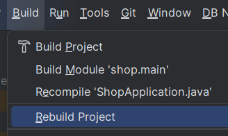 상단 메뉴바 File > Invalidate Caches / Restart… 를 선택 -> IDE가 재실행된다.