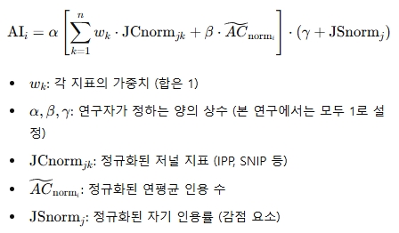 논문 인덱스는 다음과 같은 가중 합 공식으로 계산 됨