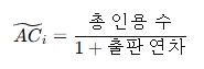 논문의 연평균 인용수는 다음 식으로 구하고 이를 다시 정규화하게 된다.
