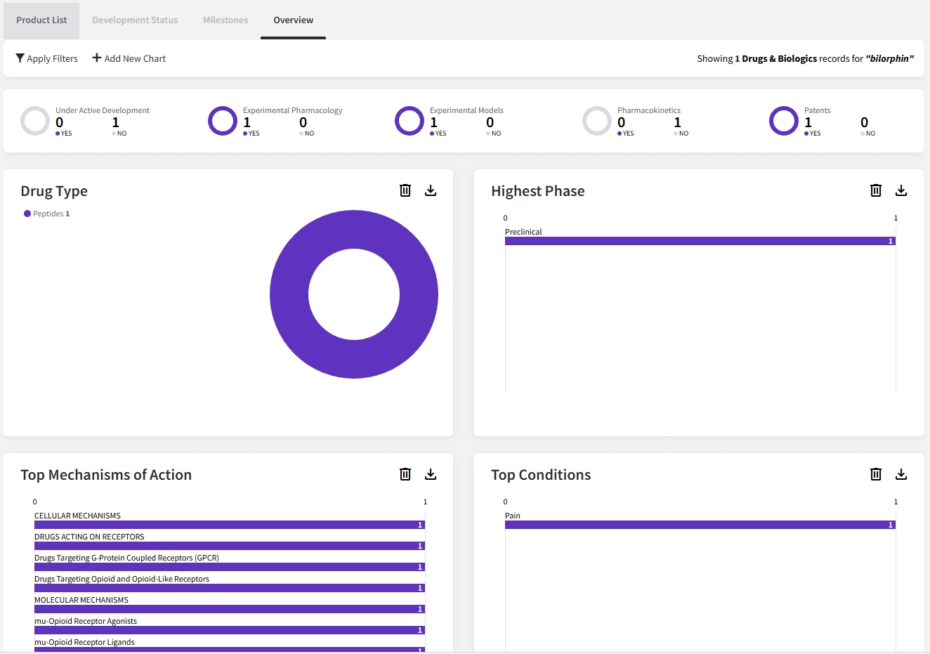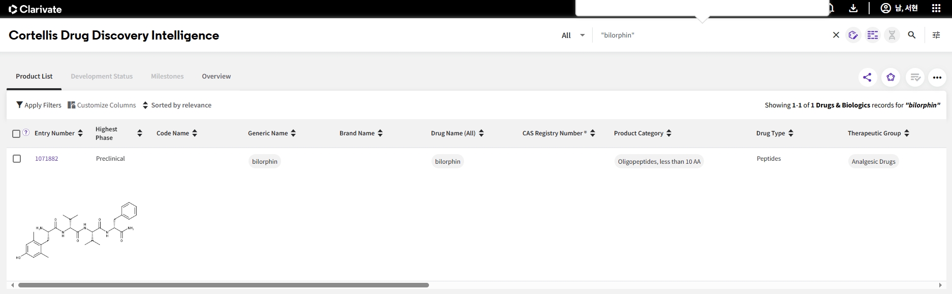 주로 사업개발, 전략기획팀에서 사용하는 제품으로 약물에 대한 상세 정보를 담고 있는 제품