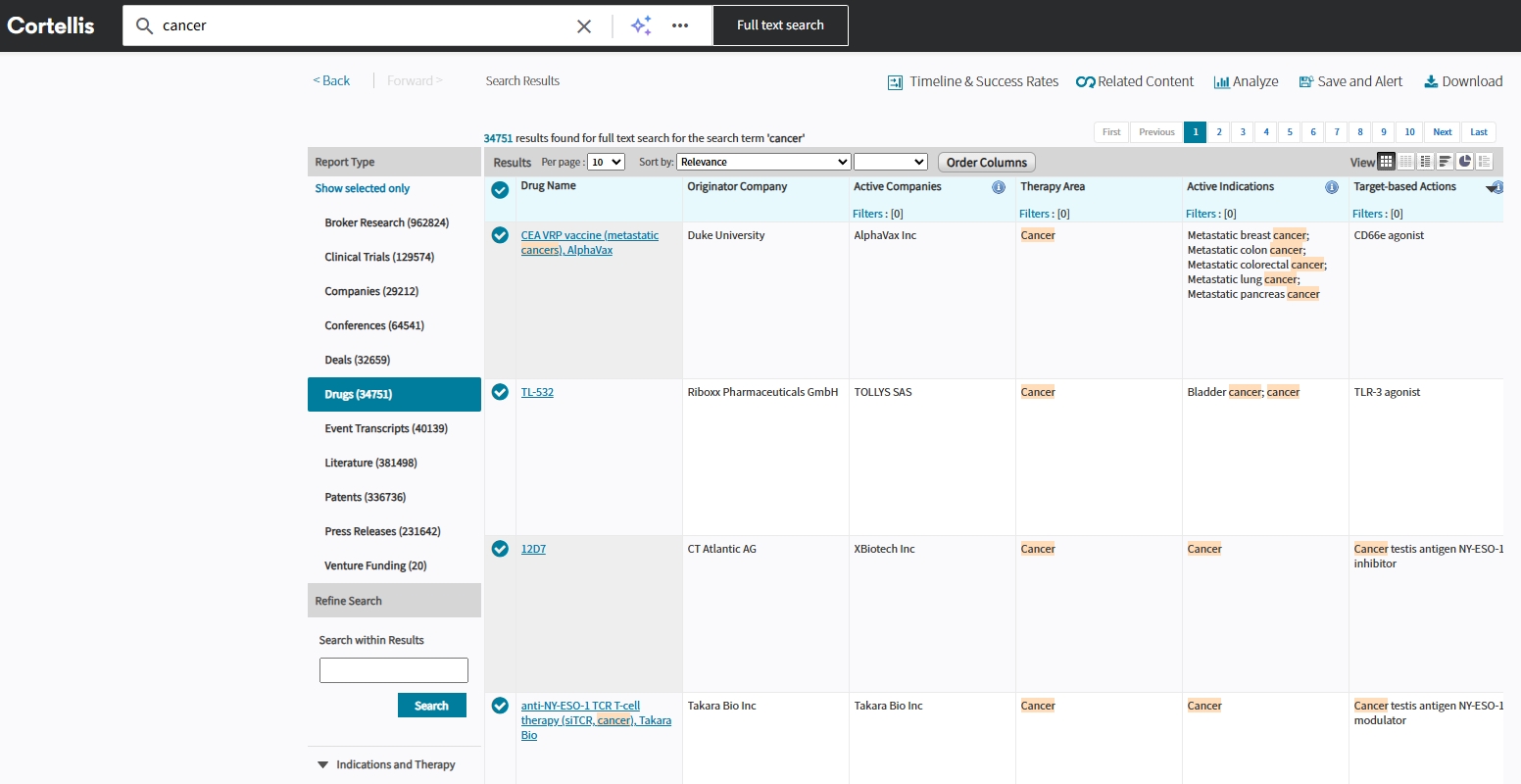 트라이얼을 제공받아 Cortellis를 사용해보았다. 7주일간의 트라이얼이기 때문에 data에 대한 접근권한은 있으나 export로 내려 받을 수 는 없다.