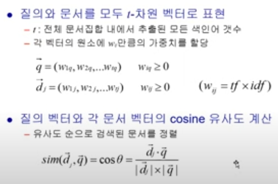 이 중에서는 vectorspace model(VSM)을 가장 많이 사용함