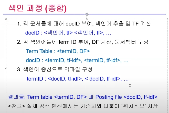 각 문서에서 사용자 질의에 의해 검색 대상이 되는 어휘들을 색인하는 작업
