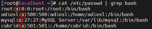 시스템의 사용자 계정(root, 일반계정) 정보가 저장된 파일(예. /etc/passwd, /etc/shadow)에 사용자 계정 패스워드가 암호화되어 저장되어 있는지 점검