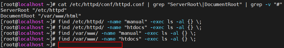 Apache 설치 디렉터리 및 웹 Source 디렉터리 내 불필요한 파일/디렉터리(htdocs, manual)가 존재하지 않는 상태입니다.