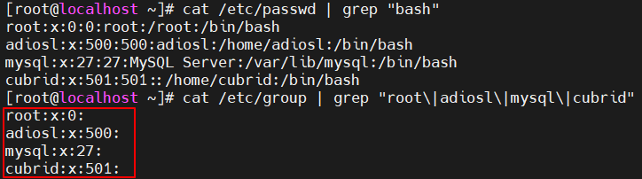 mail:x:12:mail,postfix 이렇게 뒤에 포함되어 있는 계정명이 표시