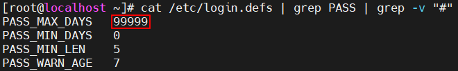 패스워드 최대 사용기간이 "99999"로 설정되어 있는 상태입니다.