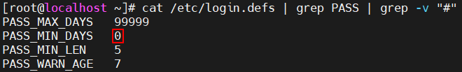 시스템 정책에 패스워드 최소 사용기간 설정이 적용되어 있는지 점검