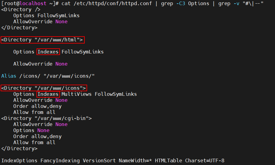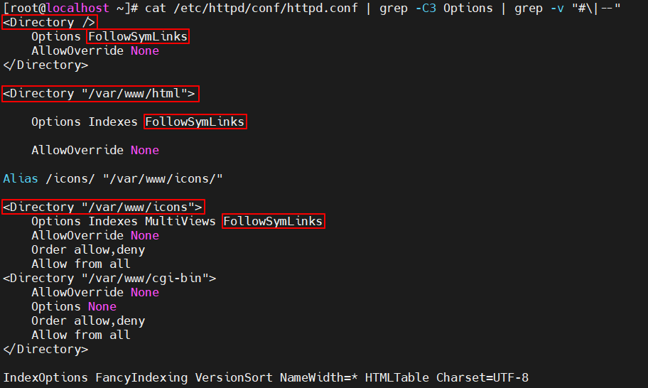 | 취약 | 심볼릭 링크, aliases 사용을 제한하지 않은 경우 |