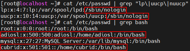 로그인이 불필요한 계정(adm, sys, daemon 등)에 쉘 부여 여부 점검