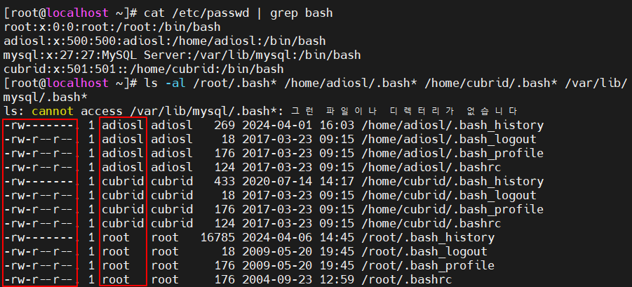 | 양호 | 소유자가 존재하지 않는 파일 및 디렉터리가 존재하지 않는 경우 |