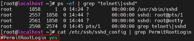 ✅ SSH 관련 "PermitRootLogin" 설정이 주석 처리되어 root 계정으로 직접 로그인이 가능한 상태입니다.