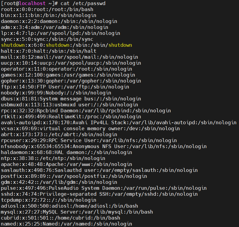 0~499: 시스템 계정 uid (root : 0) (daemon, bin, sys 등)