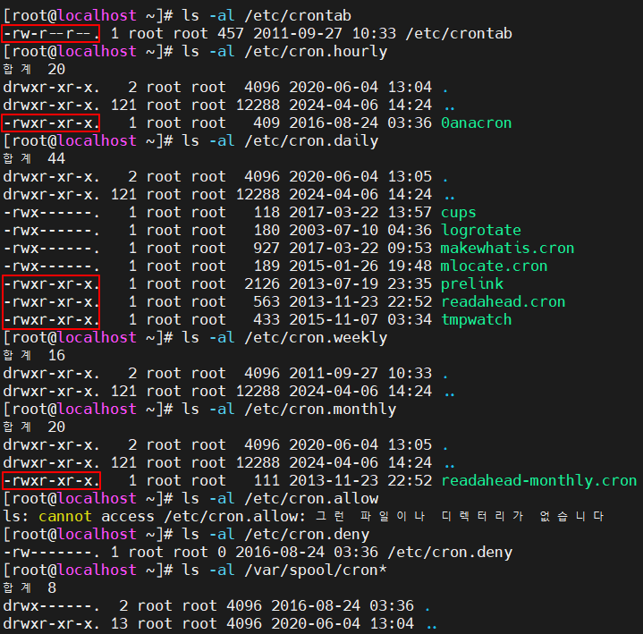 관리자(root)만 at.allow파일과 at.deny 파일을 제어할 수 있는지 점검