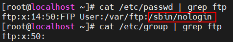 | 취약 | ftp 계정에 /bin/false 쉘이 부여되어 있지 않은 경우 |