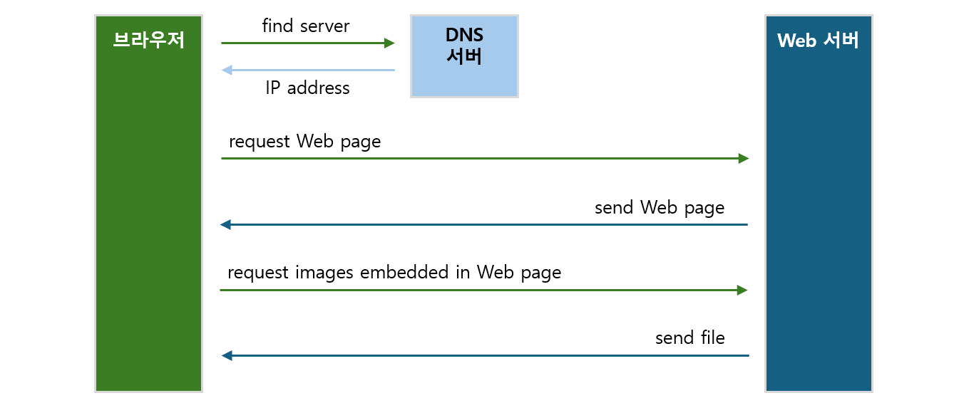 ④ 웹 브라우저가 IP 주소를 이용하여 웹 서버에게 웹 페이지(html 문서)를 요청한다.