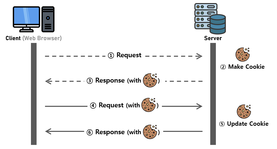 ▪ Client는 서버에 데이터 요청(조회, 수정, 삭제 등)을 전송할 때 마다 쿠키를 포함하여 전송