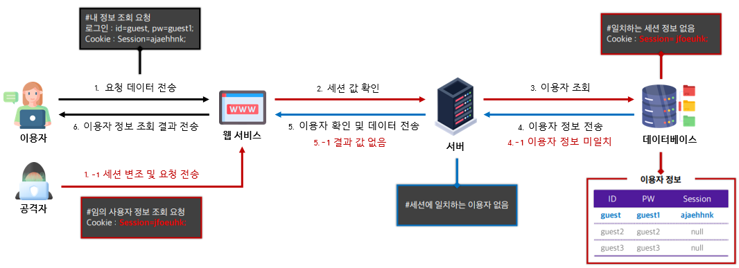 ※ 단, 세션 원문을 탈취할 경우 세션 변조를 이용한 요청 전송 가능