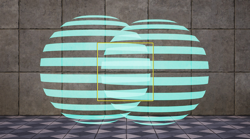 두 애디티브 메테리얼이 적용된 모델이 겹치면, 겹친 부분이 더해져 밝아지는 것을 볼 수 있다.