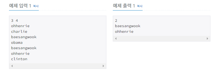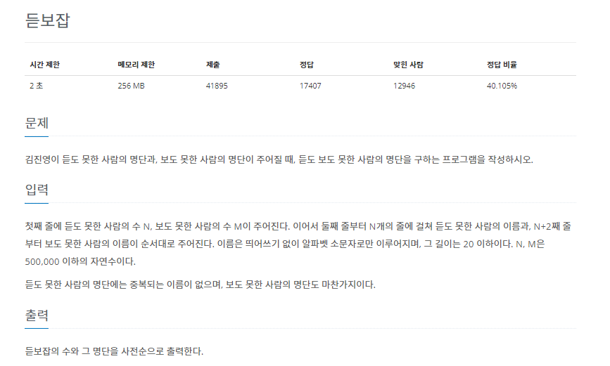 문제 출처 : https://www.acmicpc.net/problem/1764