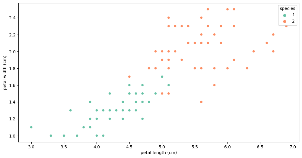 iris_12 = iris_pd[iris_pd['species']!= 0]