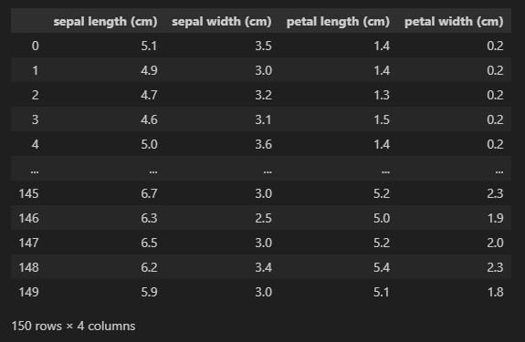 iris_pd = pd.DataFrame(iris.data, columns=iris['feature_names'])