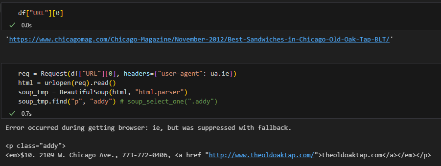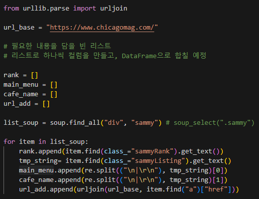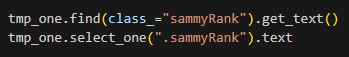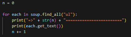 list 형태로 반환하기 때문에 find_all에서 특정 태그 찾을 땐 [0]을 붙여 같이 사용해 줘야 함(ex. [0]을 하면 찾은 값 중 첫 번째 값의 text값 반환)