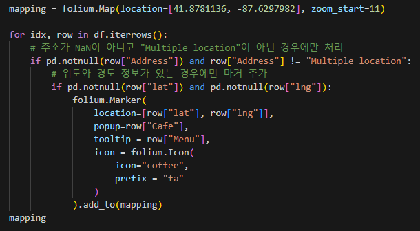 근데 나는 이거로 코드가 실행이 안된다(folium 라이브러리에서 위치 정보로 사용하는 NaN 값이 지원되지 않는다고 chat GPT가 그랬음 ,, )