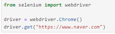 def main_get():# 페이지 접근 url = "https://www.opinet.co.kr/searRgSelect.do" driver = webdriver.Chrome() driver.get(url) time.sleep(3) # 팝업창으로 전환 driver.switch_to_window(driver.window_handles[-1]) # 팝업창 닫아주기 driver.close() time.sleep(3) # 메인화면 창으로 전환 driver.switch_to_window(driver.window_handles[-1]) # 접근 URL 다시 요청 driver.get(url)main_get()