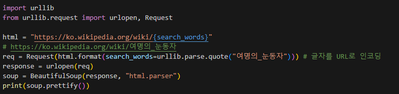주소 변수에 넣기: page = urlopen(url) 또는 response = urlopen(url) 사용