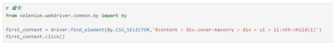 keyword = driver.find_element(By.CSS_SELECTOR, "#header > div.search > input[type=text]").send_keys('딥러닝')