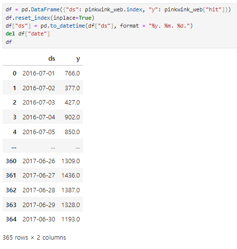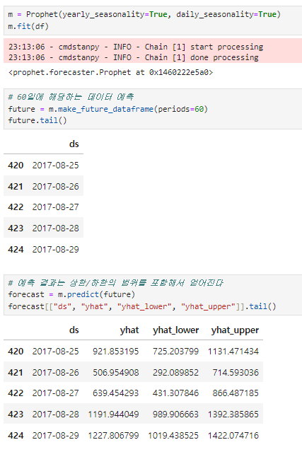 - pip install prophet(conda명령으로 안될 시 pip 명령으로 설치)