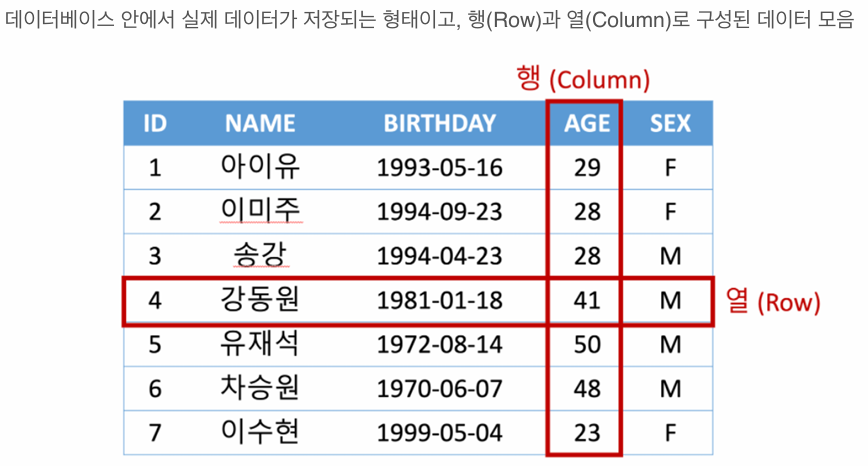 -> 여러 사람이 공유하여 사용할 목적으로 체계화해 통합, 관리하는 데이터의 집합체