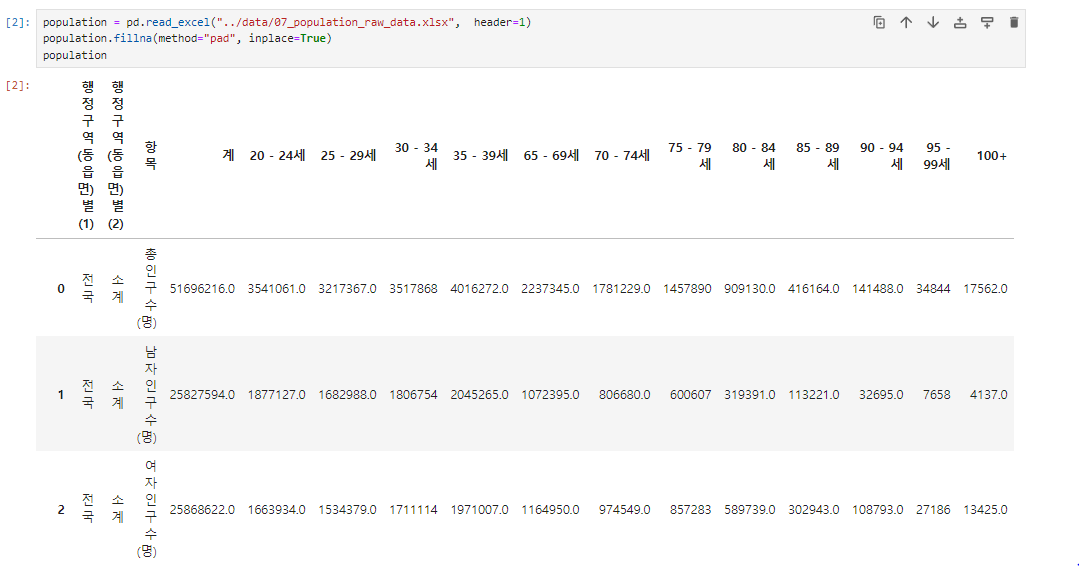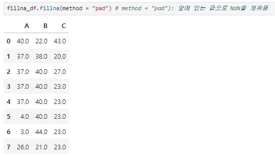 method = "pad": 앞에 있는 값으로 NaN를 채워줌