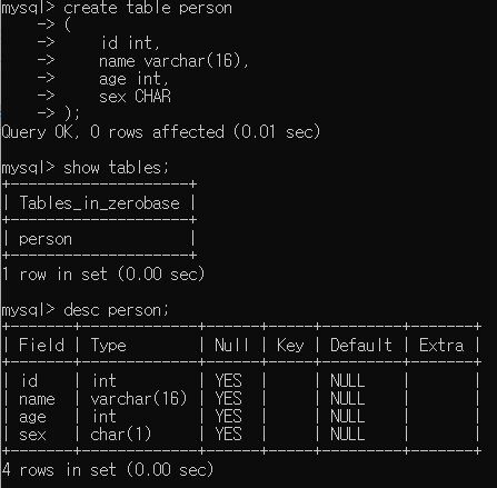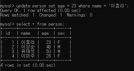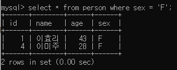select name, age, sex from person: name, age, sex 열의 values 만 가져온다.