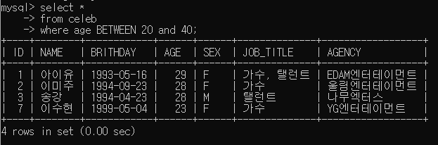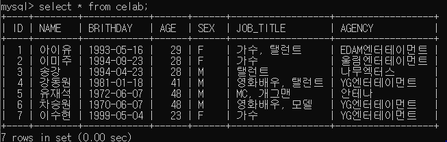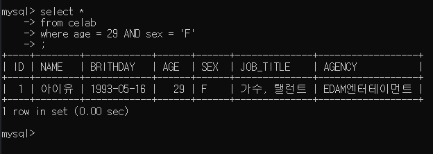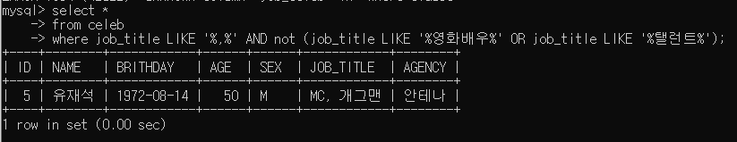 - step1: celeb 테이블 중 소속사가 안테나인 사람 검색