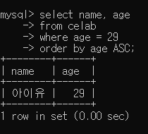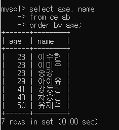 - order by 열(column), order by 열(column) ASC : 열 기준으로 오름차순 정렬