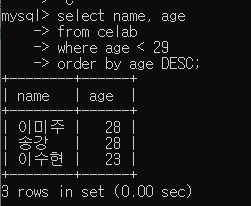 - order by 열(column) DESC : 열 기준으로 내림차순 정렬