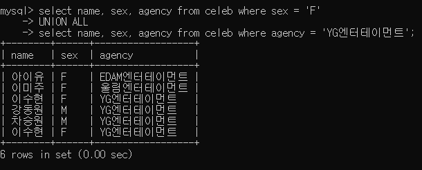 예제1 UNION ALL: '이수현' 값이 두 번 나타남