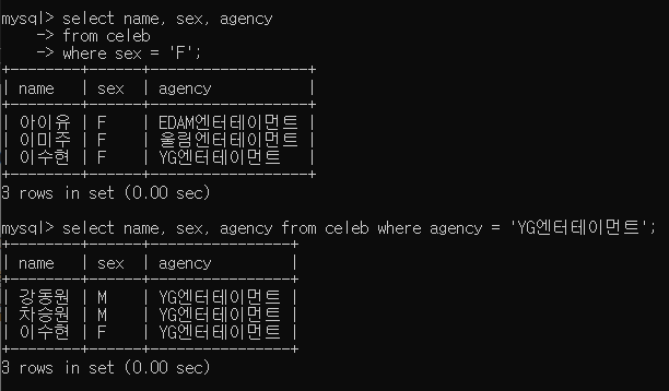 예제: 연예인 소속사 종류를 검색-중복 제거