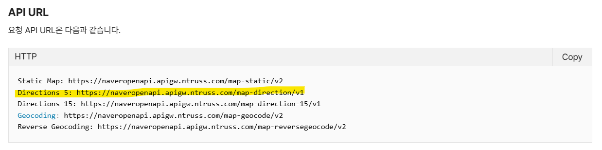 나는 Direction 5 API를 사용하기 때문에, 해당 API URL을 사용할 것이다.