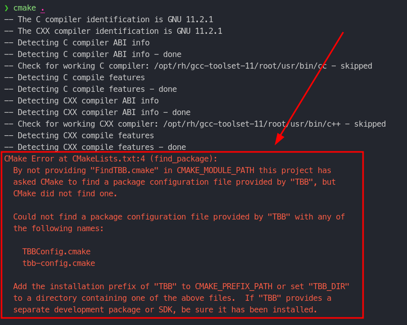 Intel TBB가 설치되지 않은 환경에서 find_package()