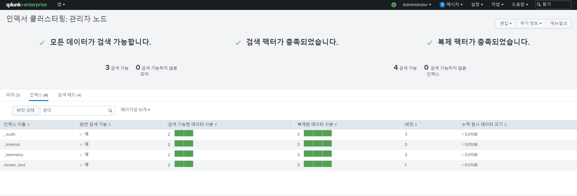 [ 설정 -> 인덱스 클러스터링 -> 피어 노드 생성]