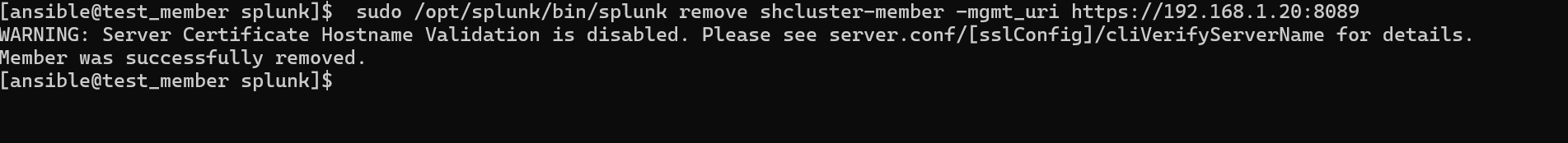 /opt/splunk/bin/splunk remove shcluster-member -mgmt_uri https://[삭제할 멤버]:8089