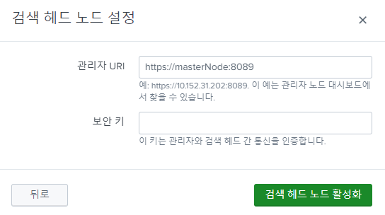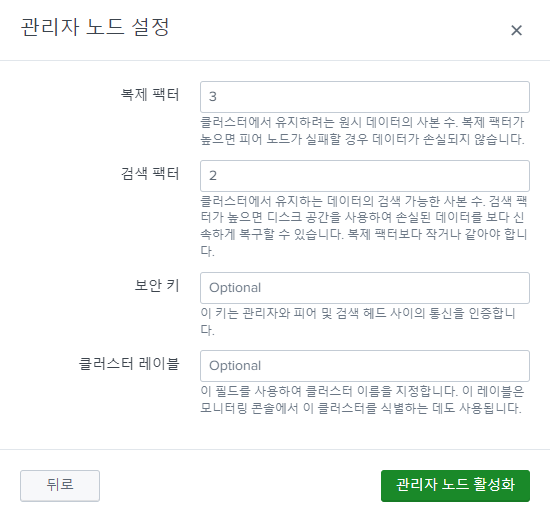 [ 설정 -> 인덱스 클러스터링 -> 마스터 노드 생성]