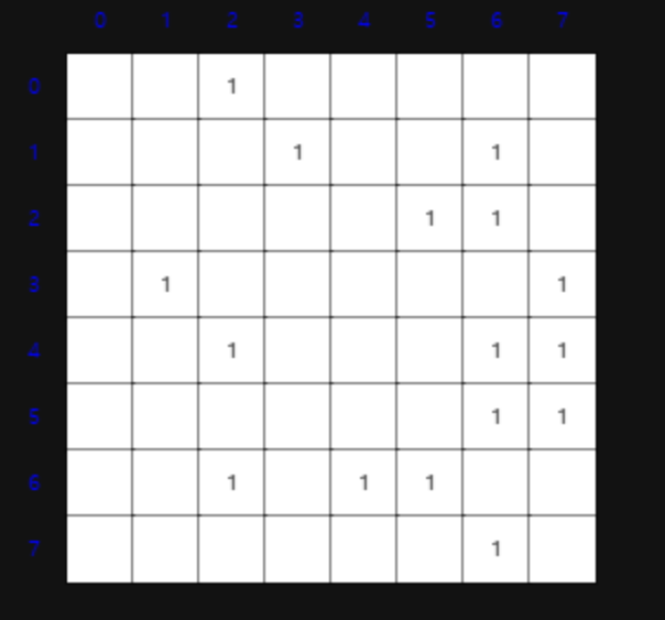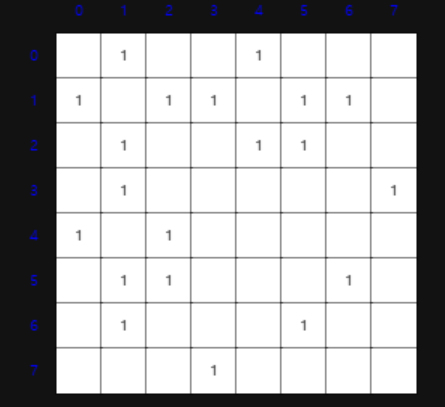 그래프를 인접행렬화시킨 모습이다. 해당 사이트에서 확인할 수 있다.