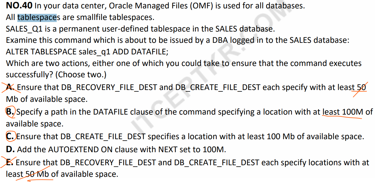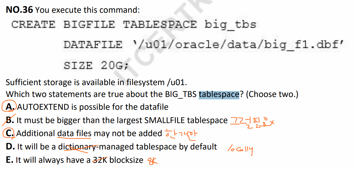 A : 가장작은 빅파일 테이블스페이스보다 작아야한다. (?)