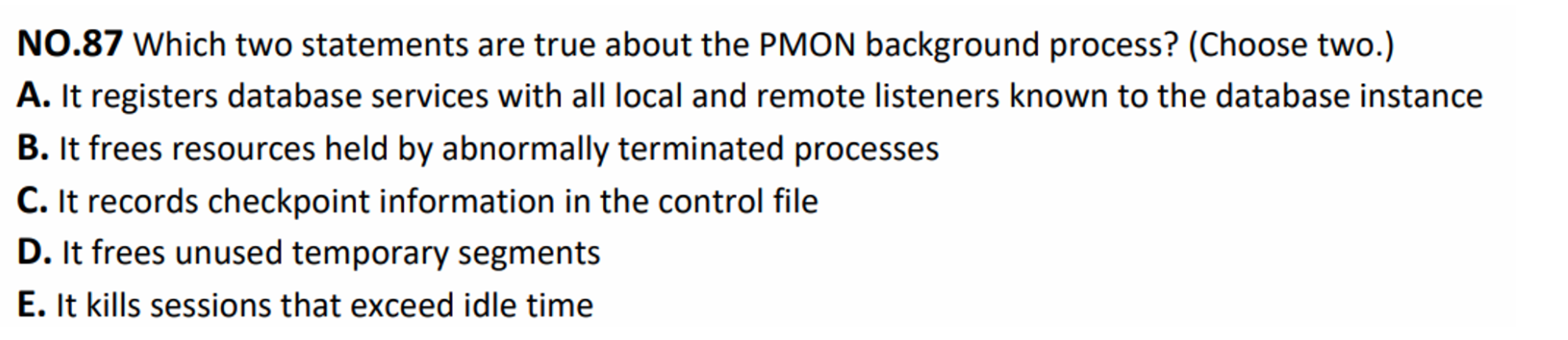✅ 답은 c, e PMON아니고 Listener Registration Process (LREG)