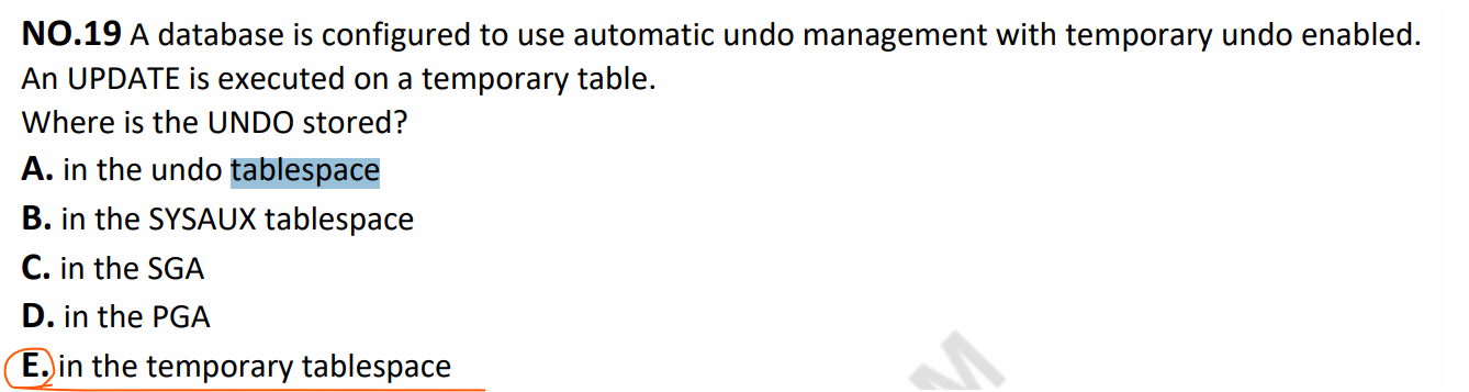 ✅ 12c 부터 임시테이블이 생성되는 undo data가 아니가 temporary tablespace